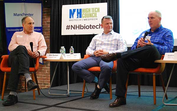 - Our inaugural event, hosted by Medtronic at their Portsmouth facility. This kick-off event was attended by nearly 100 people, and included a panel discussion titled “BioTech/MedTech Leader Perspectives & Why NH?” The panel included industry leaders Suzanne Foster, VP and general manager of Medtronic Advanced Energy, Herve Berdou, site head for Lonza Biologics, Tom Burns, CEO of Resonetics, and Christina Ferrari, attorney at Bernstein Shur.